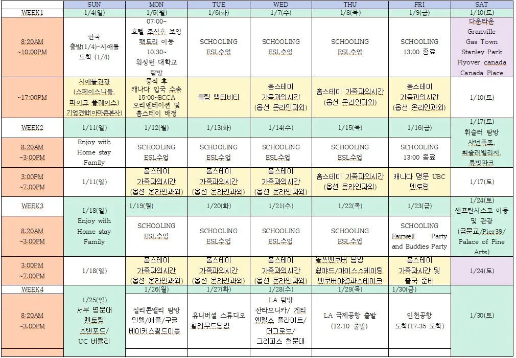 2026년 1월 겨울캠프 일정표